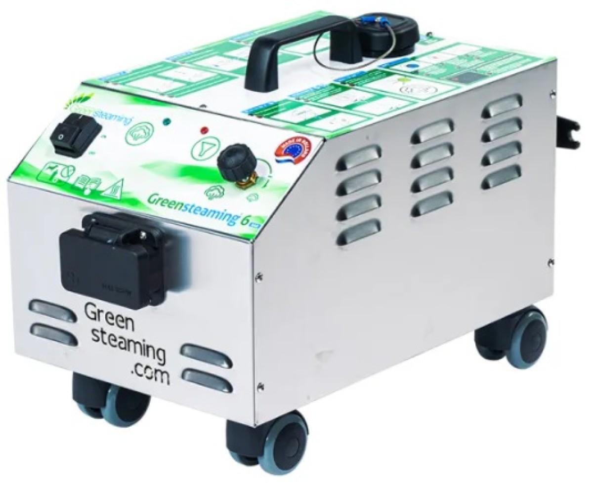 De Greensteaming® 6 is met regelbare 6 bar zowel met droge als natte stoom (extra spoelwater) de ideale schoonmaakhulp voor thuisgebruik en semi-professioneel op de meest uiteenlopende oppervlakte (let op: moet wel hittebestendig en kleurecht zijn).