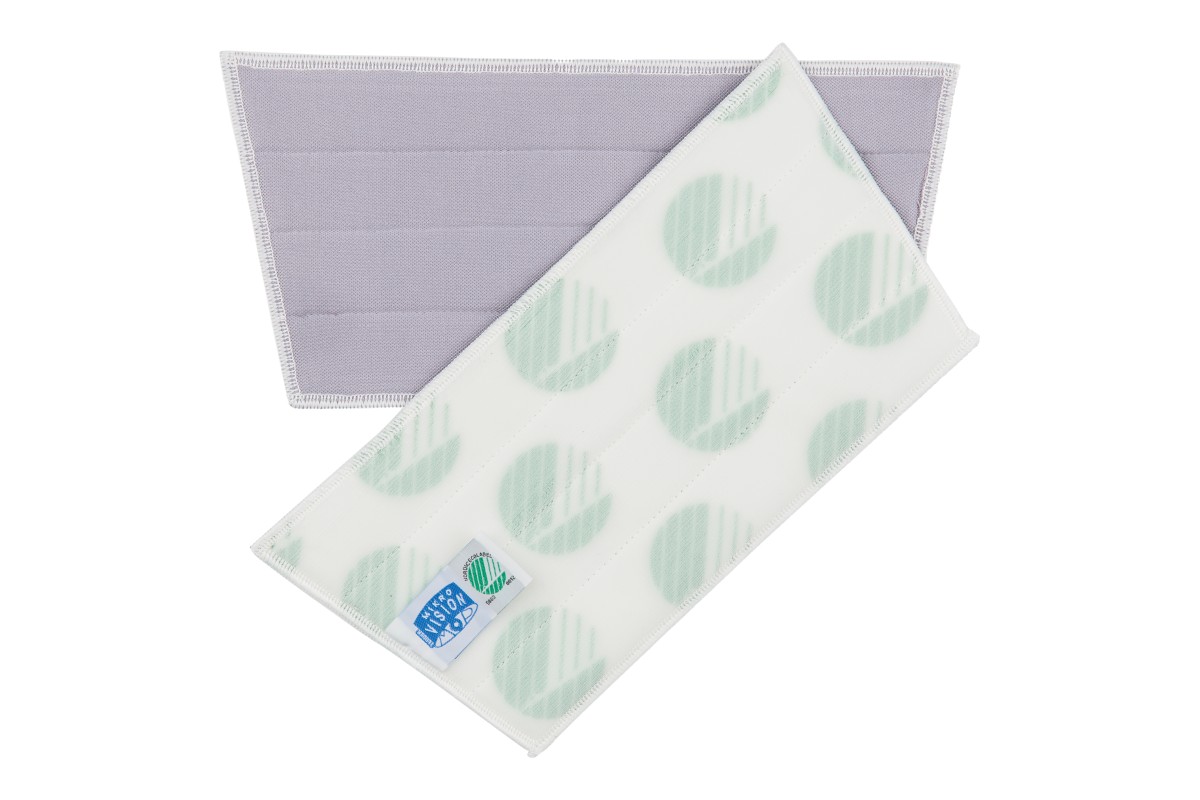 De mop is voorzien van een klittenbandbevestiging, waardoor deze eenvoudig en stevig op het vlakmopframe bevestigd kan worden. De grijze uitvoering maakt de mop herkenbaar en geschikt voor kleurgecodeerd schoonmaken. Met een breedte van 30 cm is de mop ideaal voor het reinigen van ramen, spiegels en andere glasoppervlakken.